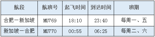 8月14日,合肥机场开通至新加坡正班航线,由东航执飞,具体信息如下: